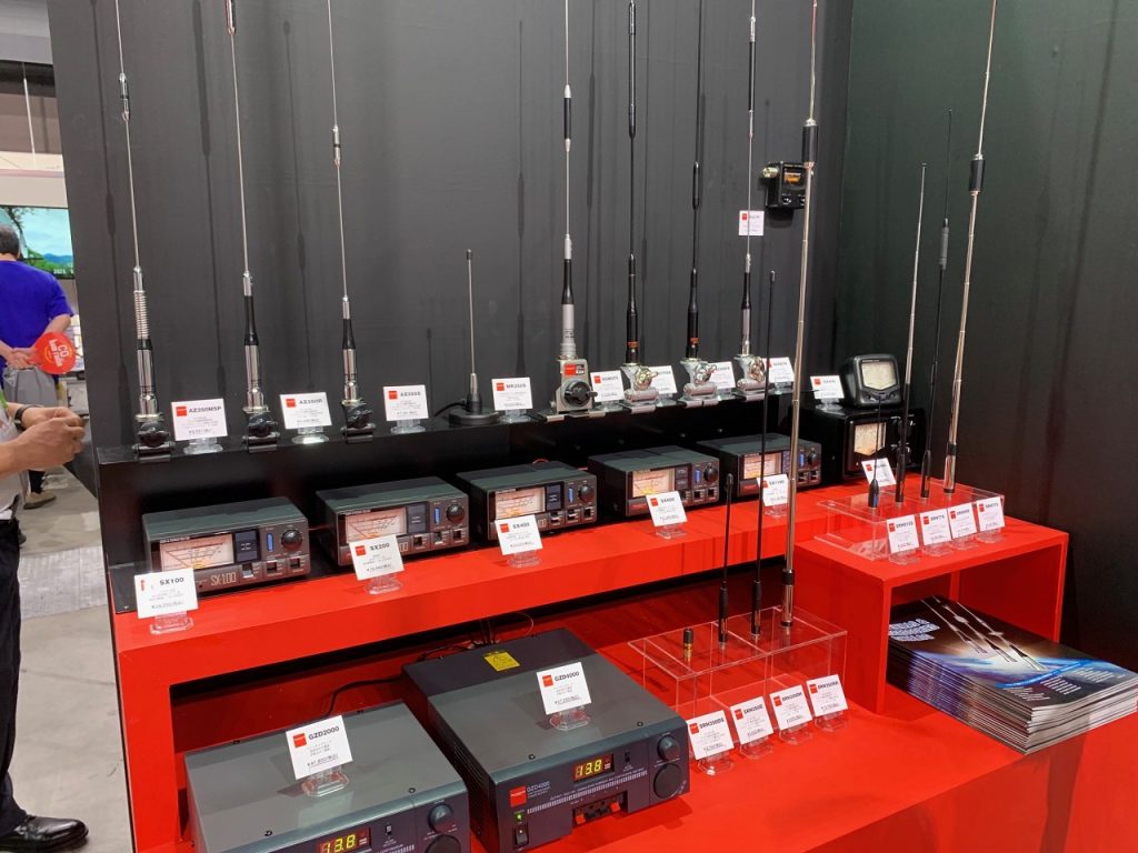 アンテナメーカーの第一電波工業のブースは各種アンテナを展示。アマチュア無線用のアンテナでは今後販売を予定している参考出品のアンテナがありましたがライセンスフリー無線用の新製品はありませんでした。2024年に参考出品していたデジコミとデジ簡のデュアルバンドアンテナ「AZ1435」の展示は無かった。もしかして企画倒れ?