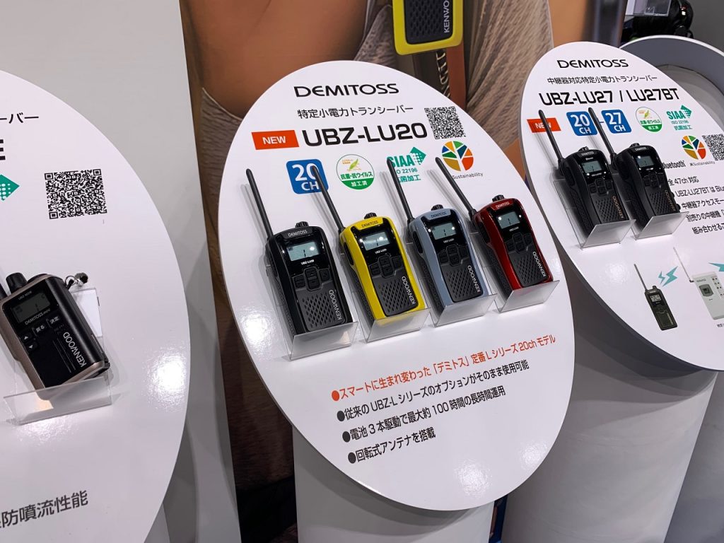 ケンウッドでは新色の特小トランシーバーが展示してありました。カラーが選べるのは本当にいい!私も最近は黒以外のトランシーバーを選ぶことが多いです。持ち歩くアイテムだからおしゃれにトランシーバーを持ちたい。