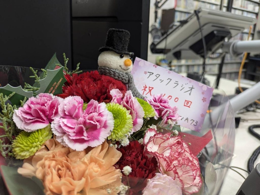 2024年1月から始まったアタックラジオ!は先週で100回目の放送を迎えました。いつも聴いてくださる皆さん、スタッフさんに支えられてここまでやってきました。ありがとうございます。200回、300回と長く続けていけたら嬉しいです。これからもよろしくお願いします。(アタック&だりあ)