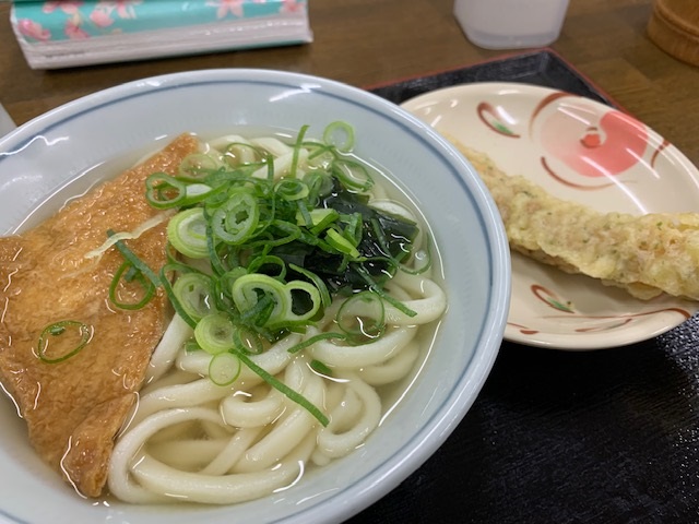 かけうどん(小)と油あげとちくわ天をチョイス。いや~うまい。うますぎる。