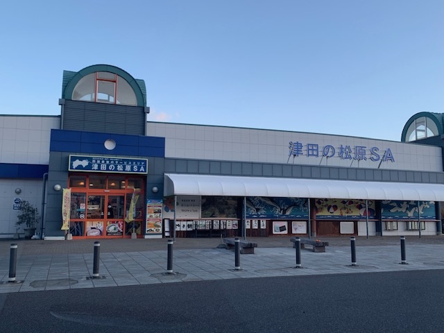 まだいける。もう一杯いける!と言うことで高松自動車道上り線の松原SA内にある「あなぶき家 津田の松原SA上り」に移動しました。8時開店と言うことでSAで30分ほど休憩&お土産を購入。うどん開店待ち。