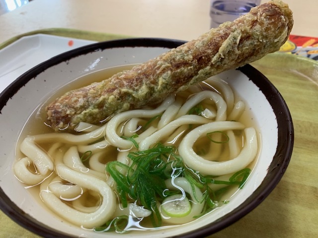 磯部ちくわ天をチョイスして3杯目の讃岐うどんをいただきました。うまい。うますぎる。