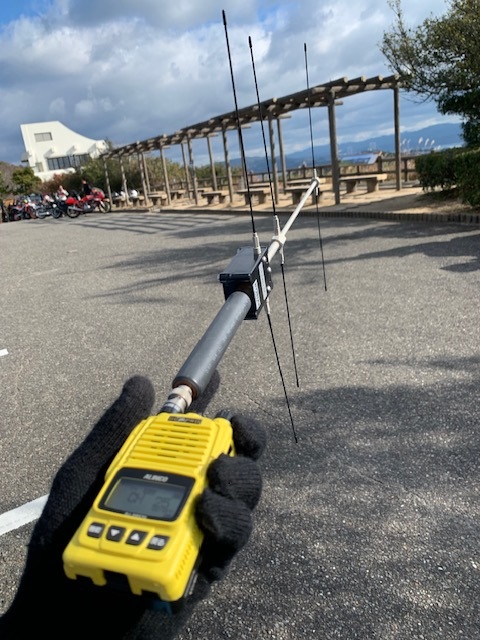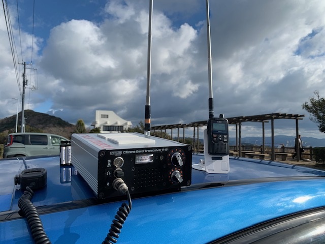 デジタル簡易無線では車載のアンテナでも良好に聞こえていましたが八木アンテナを取り出し柏原山に向けて電波を出してチェックイン完了。キー局は「おかやまST01局」でした。特小は残念ながら聞こえず。