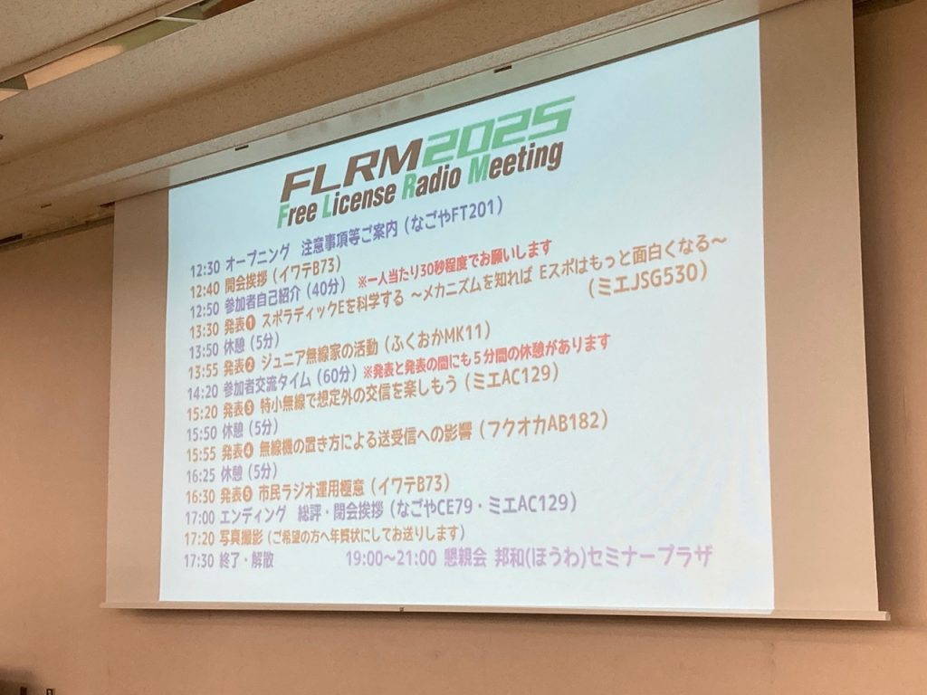 ■今日の後半のコーナーは「FLRMレポート」でした。FLRMは、ライセンスフリー無線の愛好家が名古屋に集まる年に一度のイベントで真剣に発表や議論が行われます。不定期ではありますが「電波の豆知識」のコーナーと変更して後半の時間にお届けします。